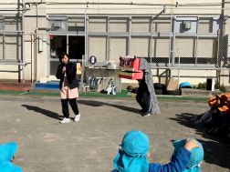 12月18日に荻窪警察署の方が来園して職員向けの防犯訓練を行いました。さすまた訓練や特殊詐欺対処法などを学び、万が一に備えるための訓練となりました。今後、園でも避難訓練に加え、防犯訓練も取り入れていく予定です。