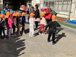 10/25(土)に地域の子育てイベントとして「親子で学ぼう防災のこと」を実施しました。3組のご家庭を招いて園での避難訓練の様子を見ていただき、非常食の試食をしたり、在園児との交流を楽しんだりしていただきました。短い時間でしたが、子どもたちも地域の方との交流は楽しかったようで貴重な経験になりました。