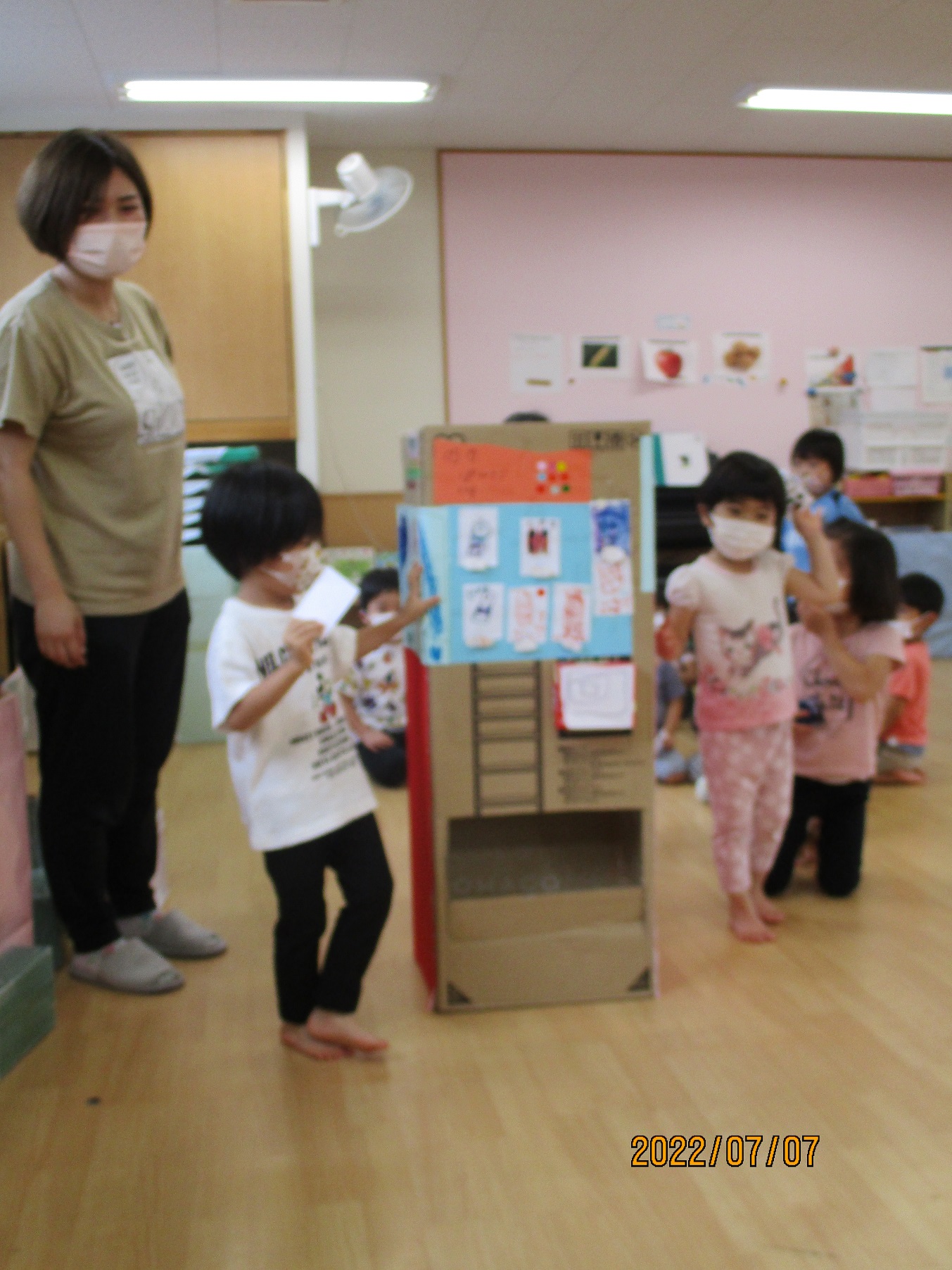 今日は7月の誕生会。夏ならではの食べ物、アイスクリームをみんなで歌いながら作り、会が始まりました。