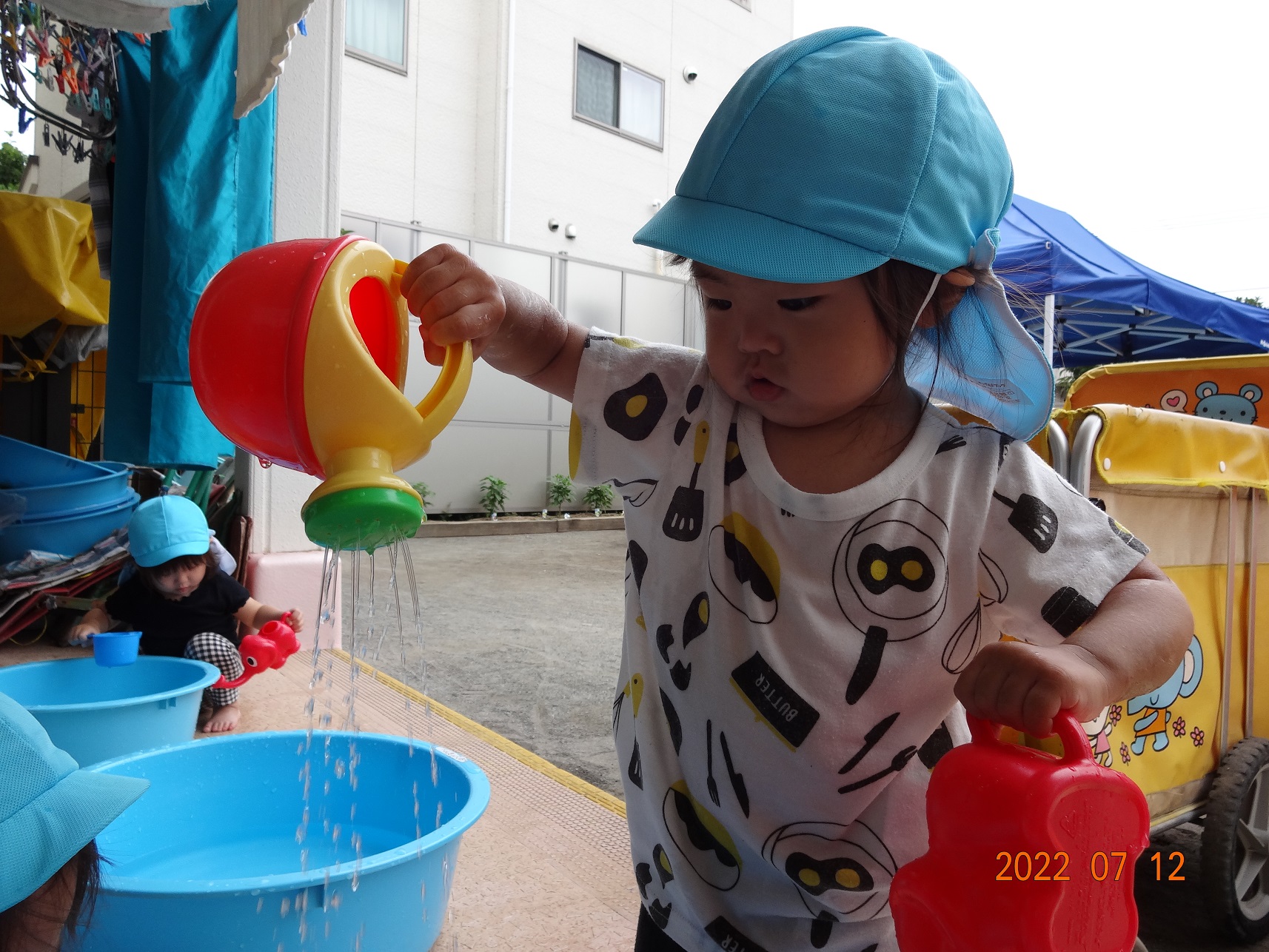 今年は年長児だけですが、プール遊びをすることができました。「楽しく安全にプールができたことへの感謝」